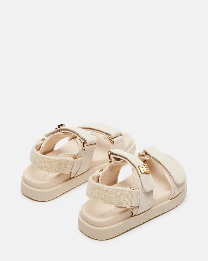 Inspirée des sandales pour papa, la Mona pour tout-petits offre à la fois style et confort à votre enfant. La bride à la cheville et les brides supérieures à velcro assurent un maintien sûr, tandis que la semelle plate ajoute une touche tendance. La chaussette intérieure confortable garantit un confort tout au long de la journée. Parfaite pour toutes les petites fashionistas.