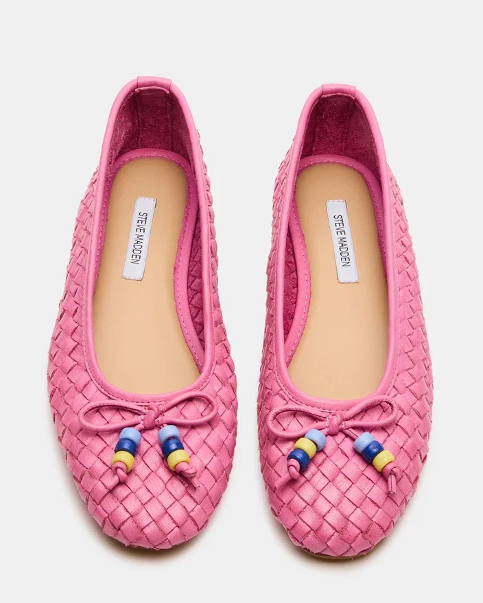 Les ballerines en cuir rose Divy témoignent d’un savoir-faire raffiné grâce à leur construction tissée et à leur élégant nœud décoratif. Ce modèle à bout rond allie esthétique minimaliste et élégance fonctionnelle, ce qui en fait un choix idéal pour celles qui recherchent des chaussures plates polyvalentes, faciles à porter en toutes occasions. Les détails tissés texturés ajoutent un intérêt visuel tout en conservant la sophistication discrète qui fait la renommée des ballerines.