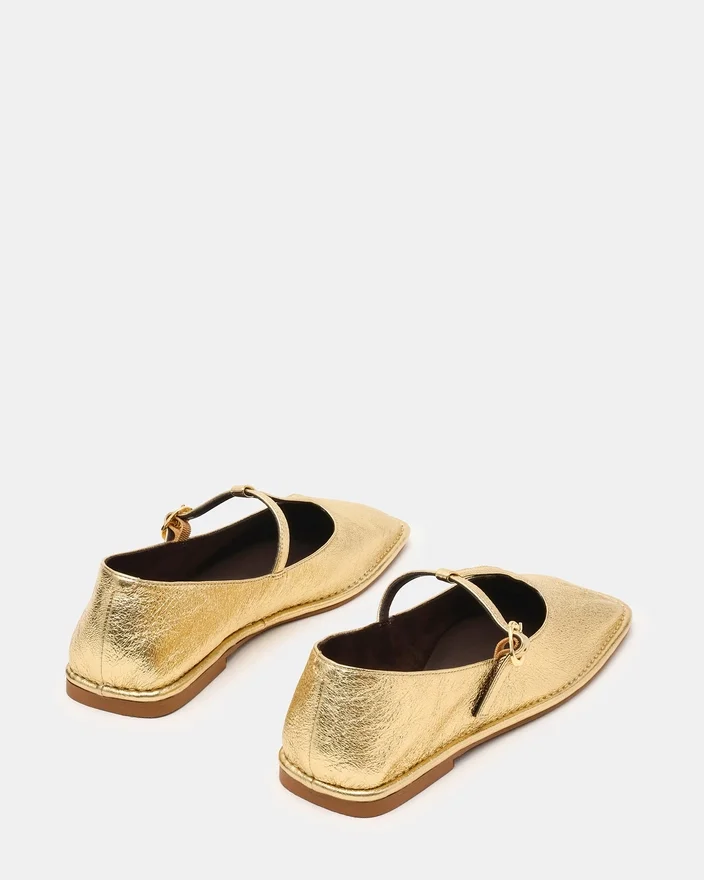 Le modèle Macbeth en cuir doré allie une élégance intemporelle à un design contemporain. Doté d’une silhouette distinctive à bout carré et d’une bride en T raffinée, ce modèle offre à la fois sophistication et confort. La construction de type ballerine offre un profil épuré, parfait pour passer de la journée à la soirée, tandis que le bout structuré et la bride de maintien assurent un ajustement sûr et élégant. Un incontournable pour toute garde-robe exigeante.