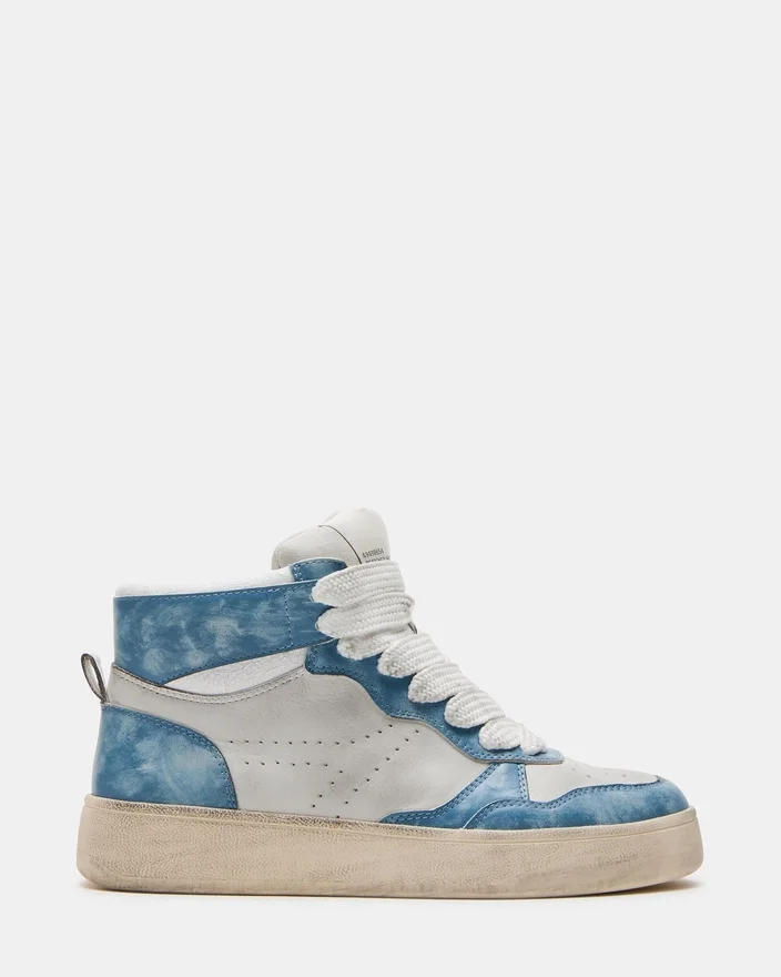 La basket montante Endless présente une semelle plate structurée avec un effet vieilli sur l’ensemble et des lacets extra-larges.