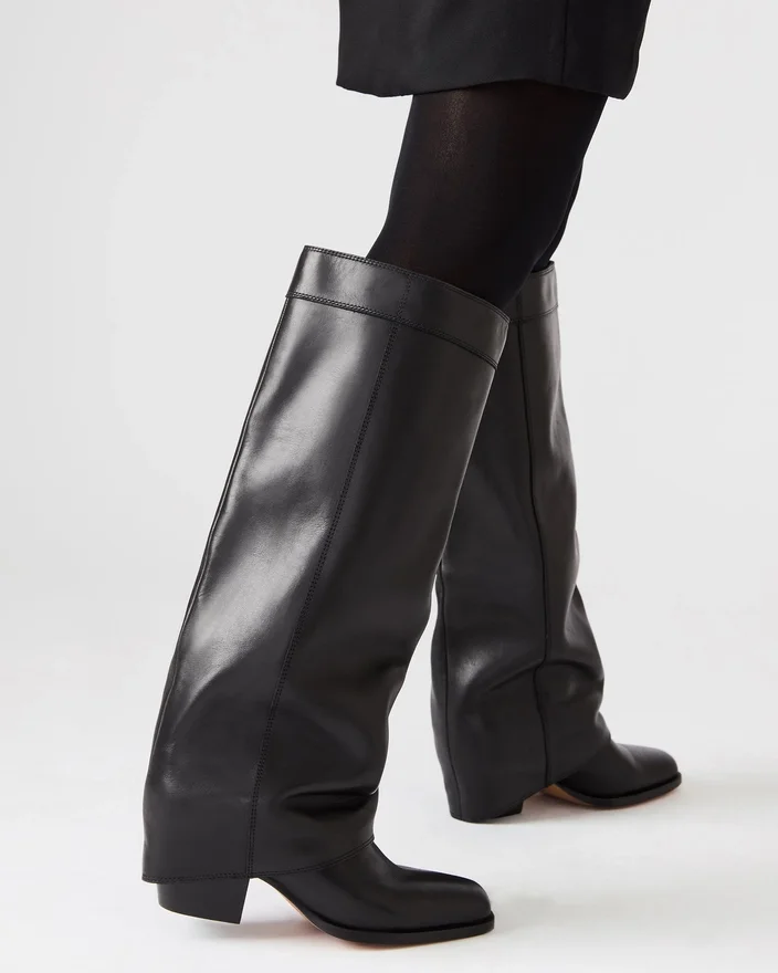 Enrichissez votre collection de chaussures avec la botte Winnick en cuir olive, dotée d’un design sophistiqué à revers qui remonte jusqu’au genou pour un look affirmé. Dotée d’un bout carré moderne et soutenue par un talon bloc robuste, cette botte allie style et stabilité, ce qui la rend idéale pour être portée toute la journée.