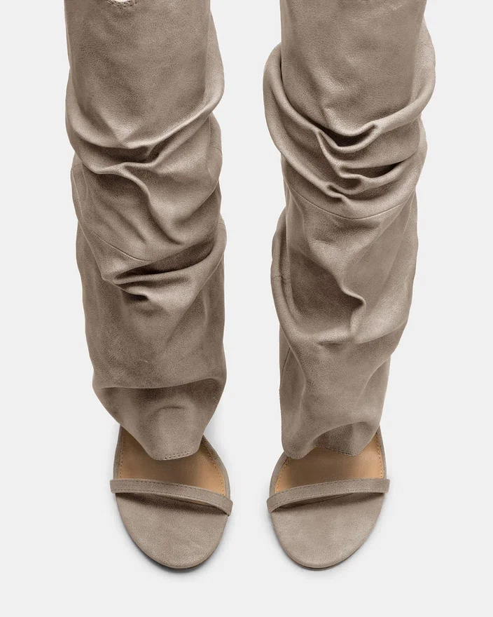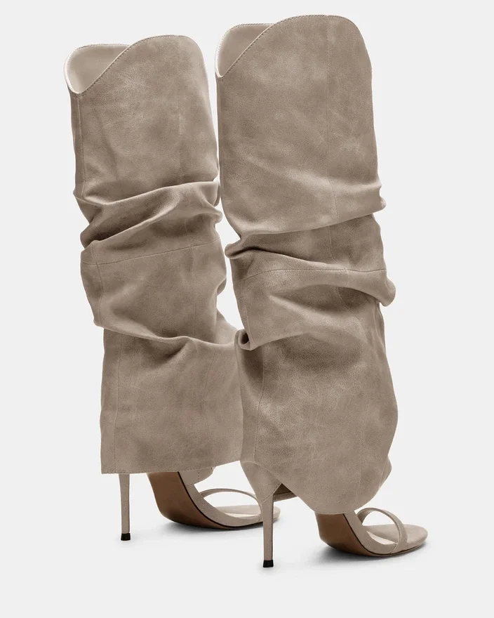 Conçues et fabriquées avec soin, les bottes Ravine à revers et montant jusqu’aux genoux présentent un bout ouvert et un talon aiguille pour une touche élégante. Le bout arrondi offre un confort optimal tandis que le design épuré ajoute une touche de sophistication. Rehaussez votre look avec ces bottes incontournables.