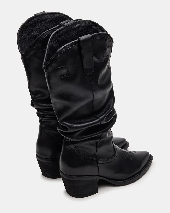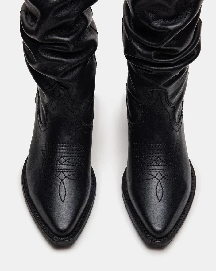 La botte Stage allie un bout pointu élégant à un design froissé distinctif, s’inspirant des styles western classiques. Conçue pour allier style et confort, cette botte offre une silhouette raffinée qui rehausse n’importe quelle tenue d’une touche de sophistication robuste. Idéale pour celles qui recherchent une version moderne des chaussures western, elle allie une esthétique audacieuse à une grande facilité à porter au quotidien.5 pouces de circonférence de tige