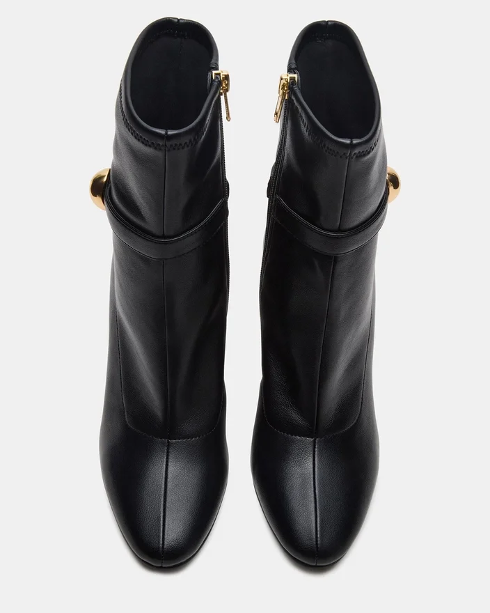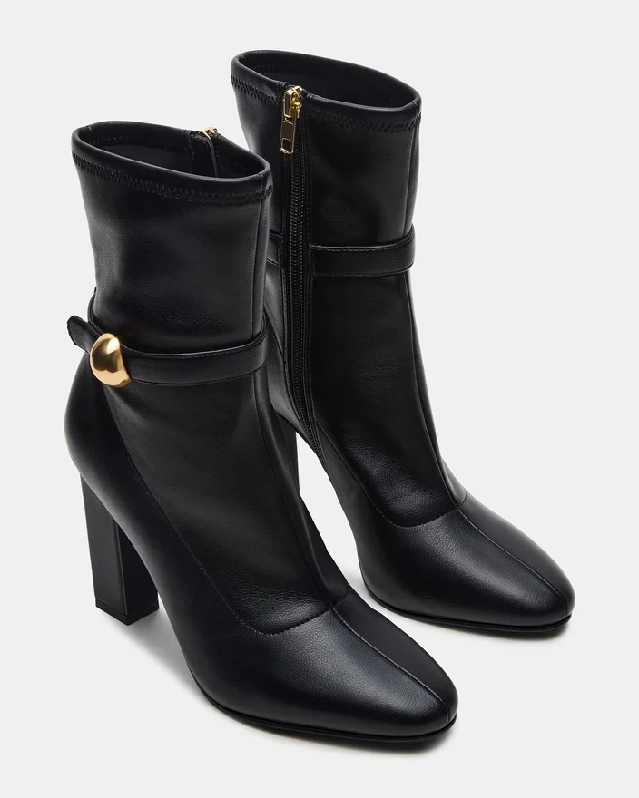 Rehaussez votre style avec les bottines à talons Aroma Belt Black, dotées d’un talon bloc robuste pour un confort et une stabilité tout au long de la journée. Le design noir élégant est rehaussé par de subtils détails dorés, ajoutant une touche raffinée de luxe. Parfaites pour les occasions professionnelles comme décontractées, ces bottines allient élégance moderne et confort pratique.