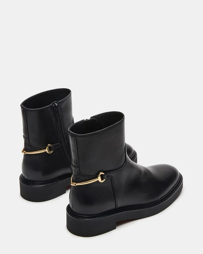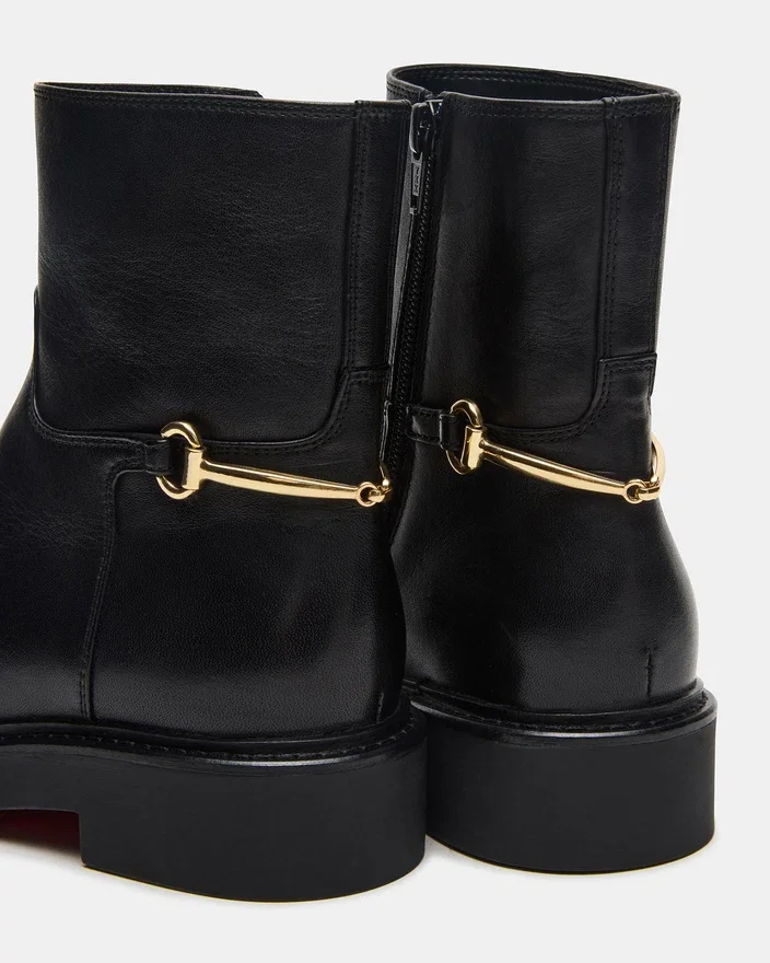 Enrichissez votre collection de chaussures avec la bottine Diablo en cuir noir. Confectionnée à partir de matériaux haut de gamme, cette bottine présente des détails dorés sophistiqués qui ajoutent une touche raffinée à n’importe quelle tenue. Sa silhouette élégante allie style et polyvalence, ce qui en fait un choix idéal pour passer de la journée à la soirée.