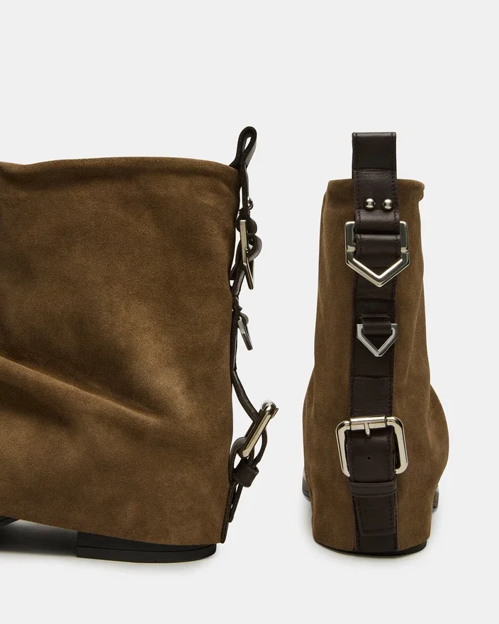 La bottine Benji présente un design sophistiqué à revers, associé à une silhouette élégante d’inspiration motard. Sa boucle unique à l’arrière ajoute une touche distinctive, alliant style et fonctionnalité subtile. Conçue pour allier confort et style affirmé, cette bottine rehausse n’importe quelle tenue grâce à un savoir-faire artisanal et une touche contemporaine.