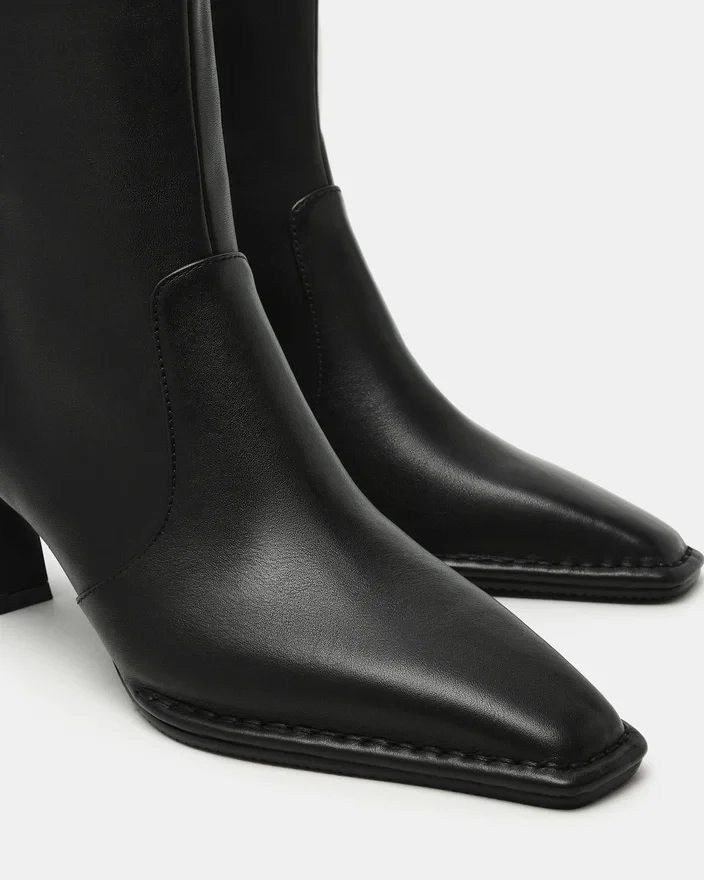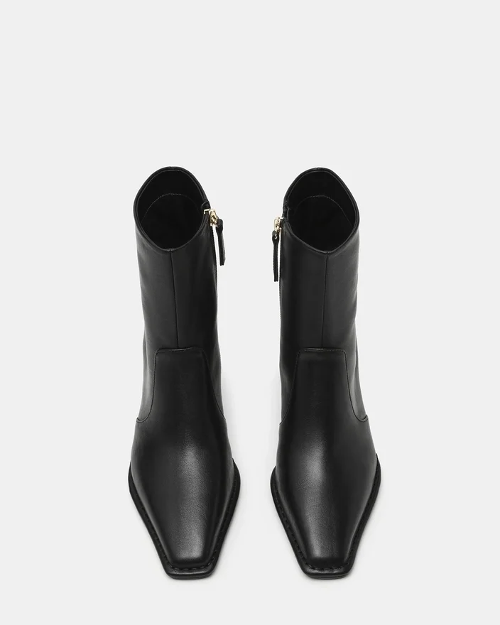 Les bottines Fare en cuir noir allient un savoir-faire artisanal à un design moderne à bout carré. Ces bottines offrent à la fois style et confort, ce qui en fait un choix idéal pour celles qui recherchent un look élégant et contemporain dans une chaussure polyvalente.