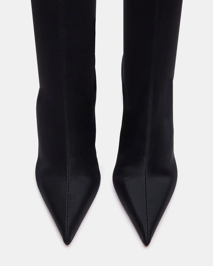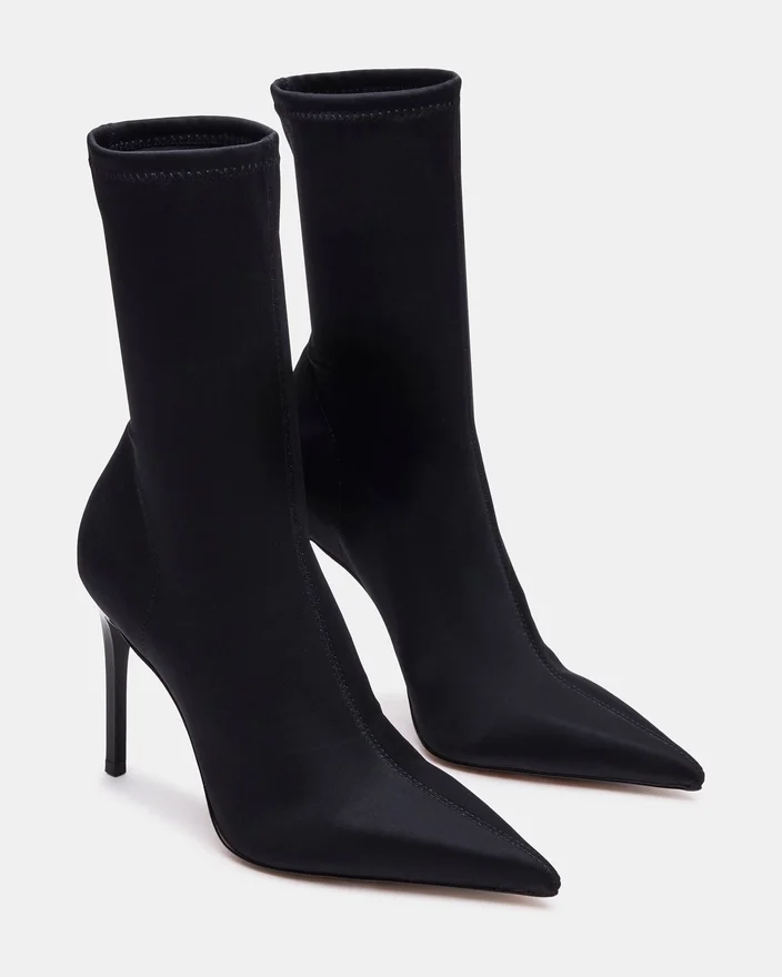 Rehaussez votre style avec la bottine à talon aiguille Midnite Black. Dotée d’un bout pointu élégant et d’une silhouette raffinée, cette bottine offre une touche sophistiquée parfaite pour être portée de jour comme de nuit. Le talon aiguille fin améliore la posture et ajoute une touche d’élégance, ce qui en fait une pièce indispensable pour un look soigné et confiant.