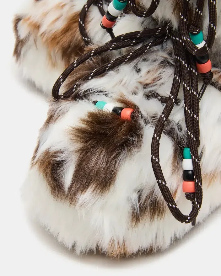 Enrichissez votre collection de chaussures avec la bottine Miro en fausse fourrure, dotée d’une doublure en fausse fourrure pour plus de chaleur et de confort. Sa silhouette imposante offre un style audacieux et contemporain, tandis que les accents de perles multicolores ajoutent une touche artistique unique. Conçue pour allier style et durabilité, cette bottine à lacets marie harmonieusement des détails avant-gardistes à une grande praticité.
