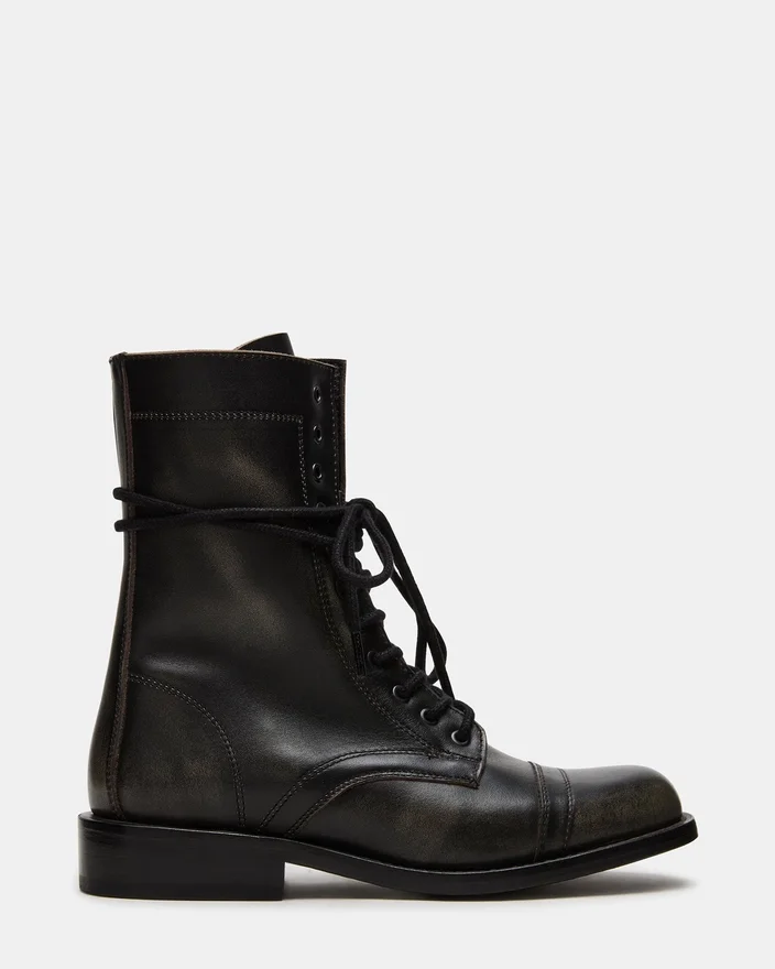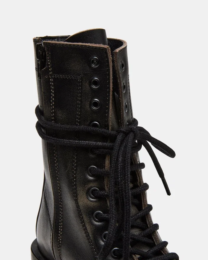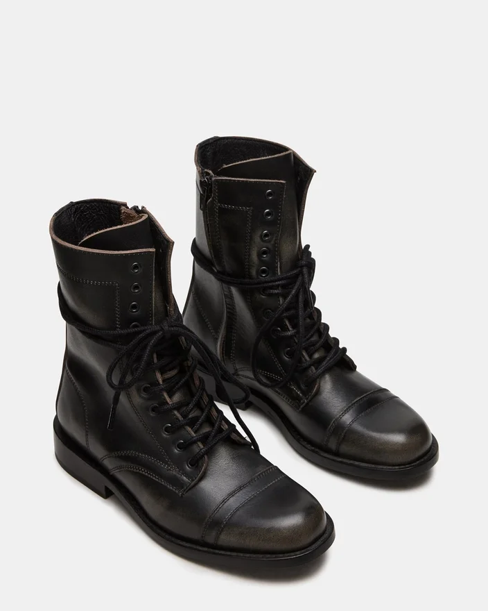 La bottine de combat Theron Black Distressed à lacets allie un style robuste à une construction durable. Conçue pour un usage fiable, cette bottine présente une finition vieillie qui ajoute une touche d’originalité à n’importe quelle tenue. Le système de laçage sécurisé assure un ajustement sur mesure, tandis que la semelle robuste offre une adhérence et un maintien adaptés aux aventures du quotidien.