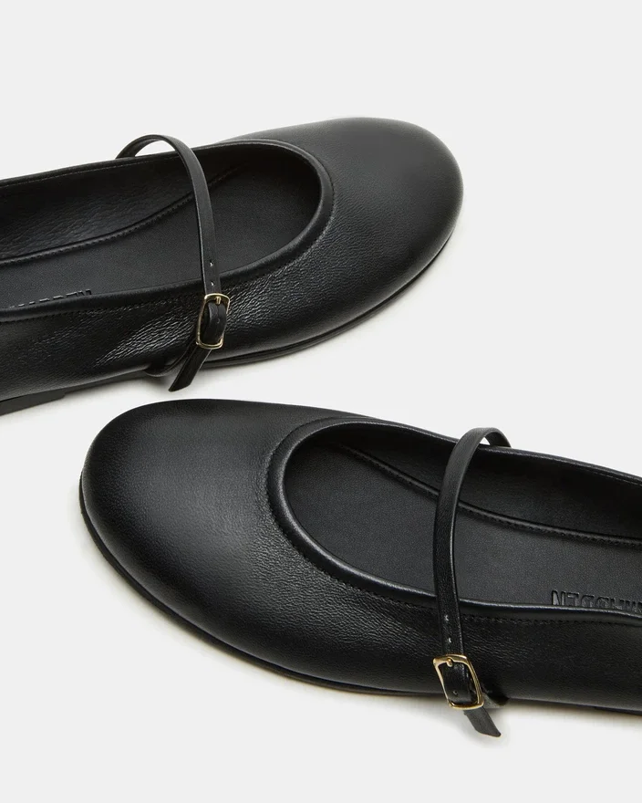Alliez style et confort avec les ballerines Mary Jane Besette en cuir noir. Dotées d’un bout arrondi, ces ballerines offrent un look chic et polyvalent qui s’adapte à toutes vos tenues. Profitez d’un mélange parfait entre mode et fonctionnalité avec ces ballerines classiques.