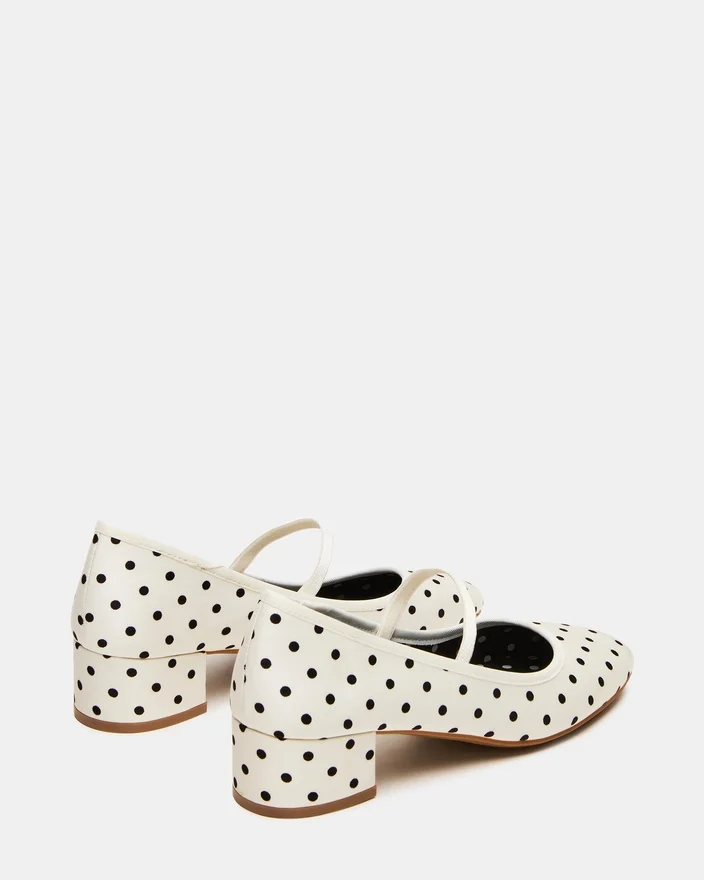 Le modèle Mural Polka Dot allie le style intemporel des Mary Jane à un design contemporain. Cette silhouette à bout carré est dotée d’un talon bloc robuste qui offre confort et stabilité tout au long de la journée, tandis que la bride Mary Jane classique ajoute une touche raffinée. Confectionné avec des matériaux haut de gamme, ce talon s’adapte parfaitement aussi bien aux environnements professionnels qu’aux sorties du week-end.