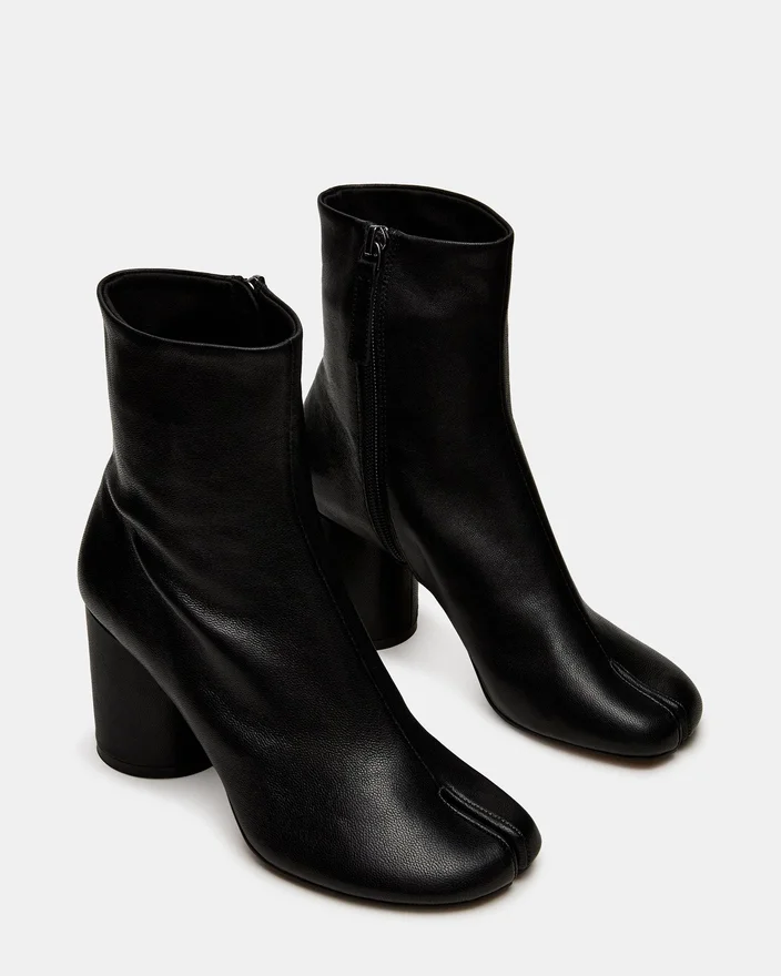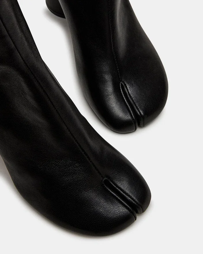 La Caro en cuir noir présente la silhouette distinctive à bout fendu de Chaussures Tabi, offrant une esthétique moderne et un confort fonctionnel. Un talon bloc robuste assure un maintien stable tout au long de la journée tout en conservant un profil élégant. Cette bottine allie à la perfection un style raffiné et une polyvalence au quotidien.