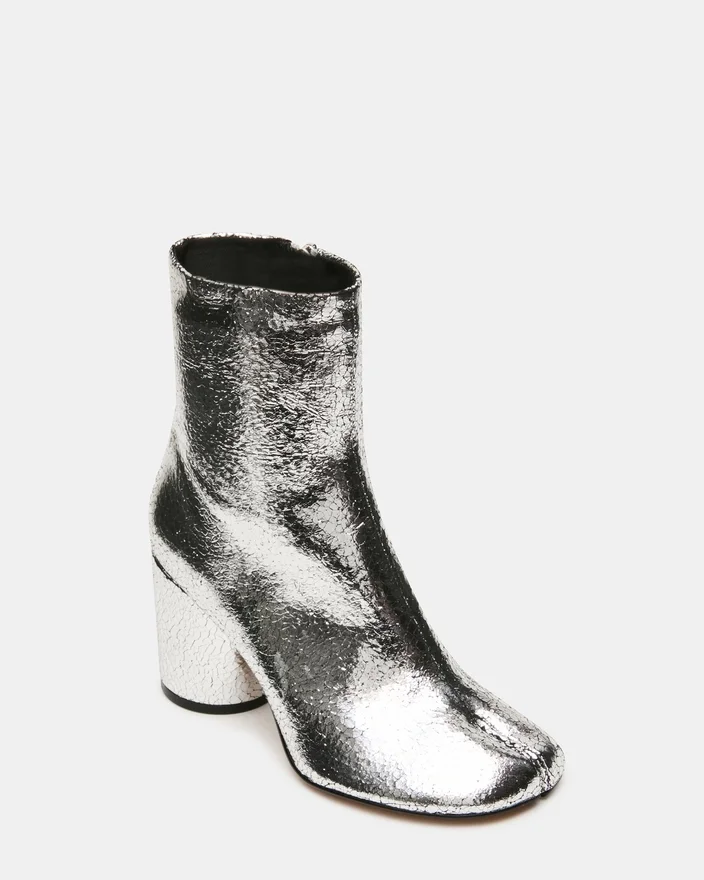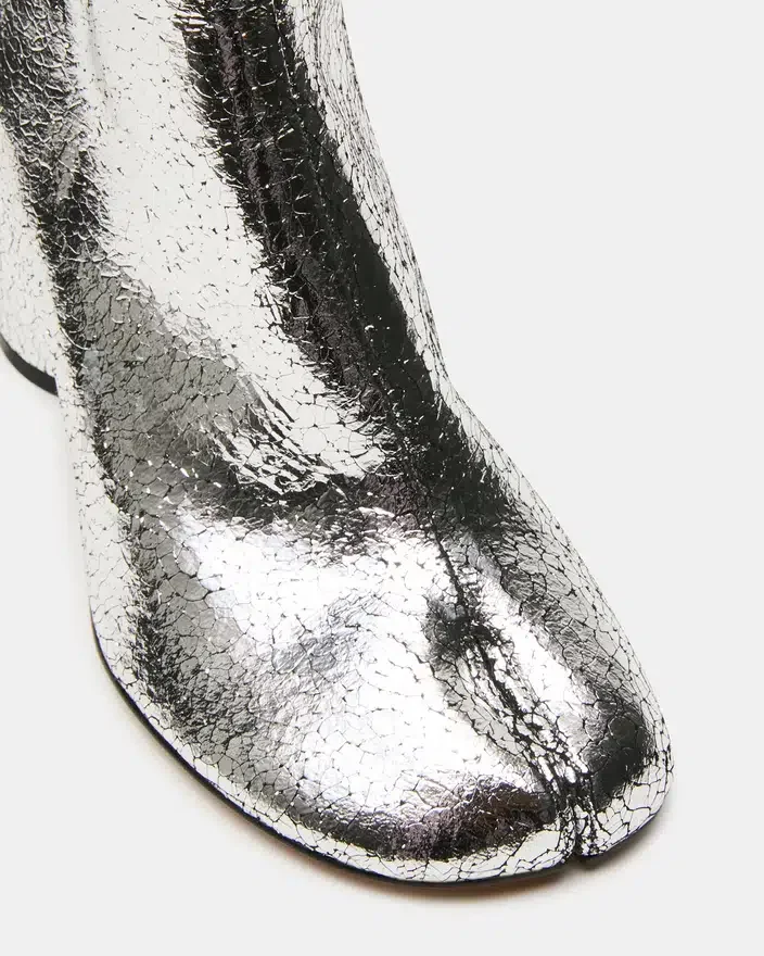 La Caro Silver Crinkle présente la silhouette distinctive à bout fendu Chaussures Tabi, offrant une esthétique moderne et un confort fonctionnel. Un talon bloc robuste assure un maintien stable tout au long de la journée tout en conservant une silhouette élégante. Cette bottine allie à la perfection un style raffiné et une polyvalence au quotidien.