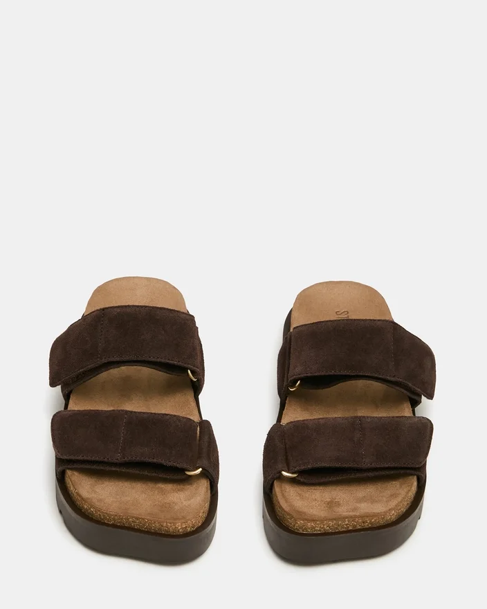 La Luther en daim marron allie un style décontracté à un confort pratique. Cette sandale à enfiler est dotée d’une bande Velcro sécurisée pour un ajustement réglable et une grande praticité. La silhouette à bout carré offre un look moderne et architectural qui s’harmonise parfaitement avec les tenues décontractées et contemporaines. Conçue pour un usage quotidien, elle offre le charme décontracté d’une sandale sans sacrifier le maintien ni le raffinement.