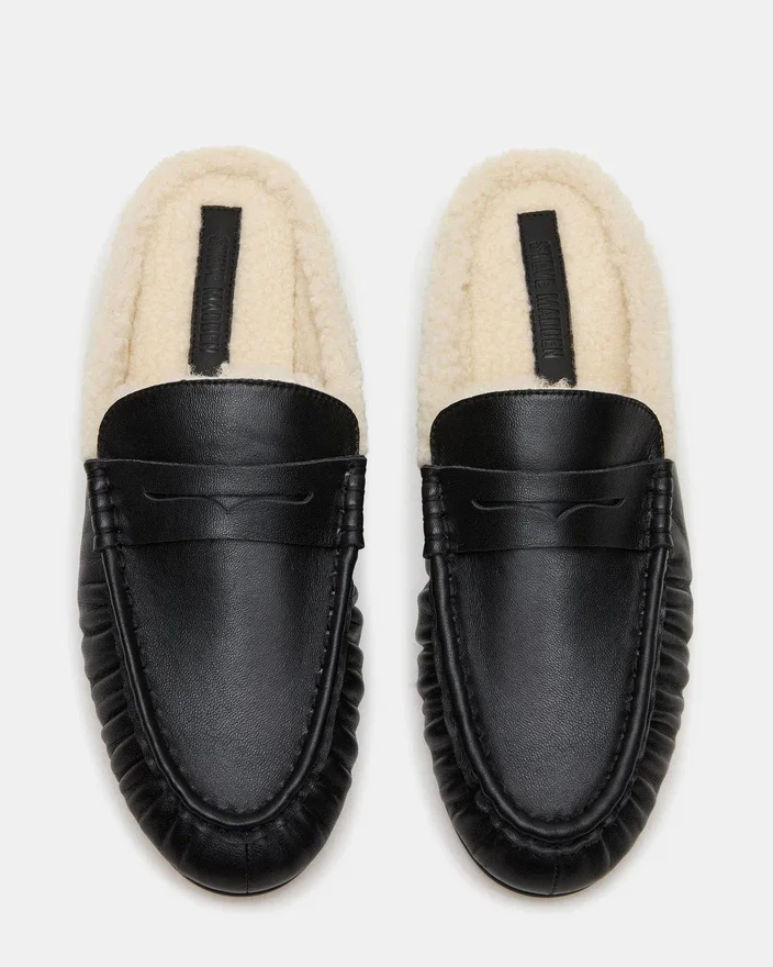 La Rafe en cuir noir et fausse fourrure est une élégante chaussure plate à enfiler dotée d’un bout arrondi pour plus de confort. Confectionnée avec des matériaux de haute qualité, cette chaussure allie mode et fonctionnalité pour un port tout au long de la journée.