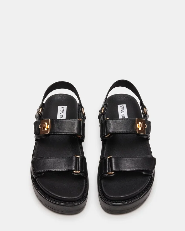 La sandale Bigmona reprend le modèle Mona avec son détail classique de fermoir tournant et rehausse le design sur une semelle plate épaisse pour un peu plus de hauteur.