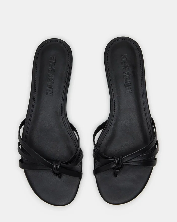 Fabriquées à partir de matériaux luxueux, les sandales en cuir noir Calissi présentent un design élégant à lanières et une semelle plate confortable. Parfaites pour toutes les occasions, ces sandales à enfiler rehaussent sans effort votre tenue tout en vous offrant un confort tout au long de la journée.