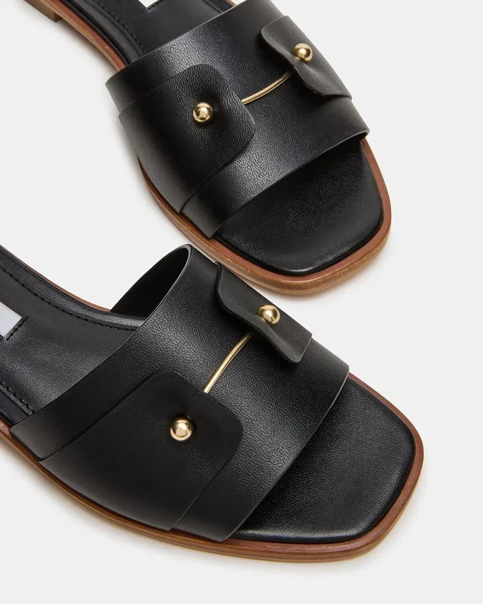 La sandale en cuir noir Hasten offre une sophistication naturelle grâce à sa silhouette épurée de type mules, confectionnée à partir de matériaux haut de gamme. De délicats détails dorés rehaussent son design minimaliste, ajoutant une touche raffinée qui s’adapte parfaitement aux occasions décontractées comme aux événements plus chics.
