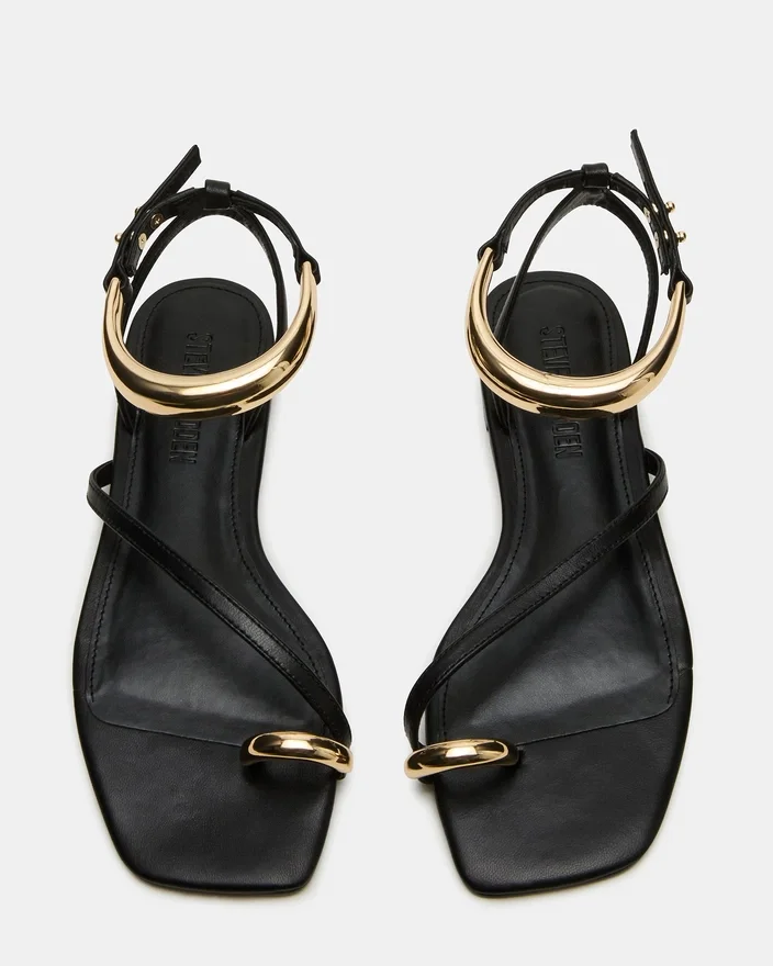 La sandale Odyssey allie style et confort grâce à son design à lanières, son bout carré et sa bride de cheville à boucles dorées. Un anneau élégant au niveau des orteils ajoute une touche de sophistication. Parfaite pour une journée en ville ou une soirée.