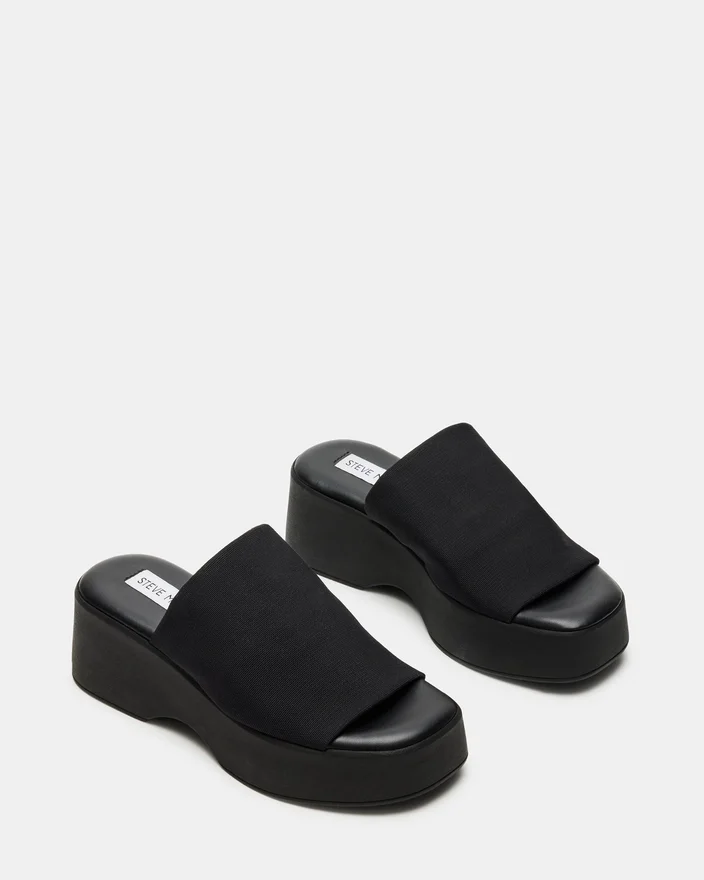Les vrais fans de Steve Madden ne peuvent s’empêcher d’adorer cette sandale emblématique, la Slinky. Caractérisée par une semelle compensée sculptée et une tige en tissu extensible, cette chaussure est reconnaissable par tous les fans de Steve Madden.