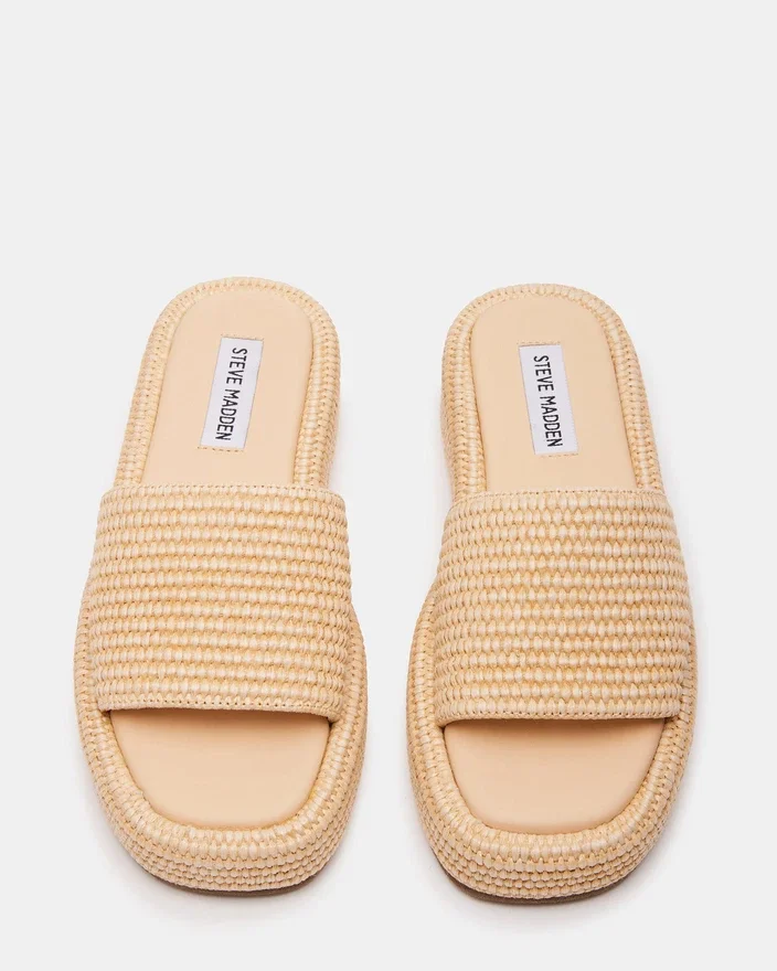 La sandale à bout carré Beachy est dotée d’une semelle plate enveloppée de raphia tressé et d’une large bride assortie, pour un look texturé ultra-confortable.