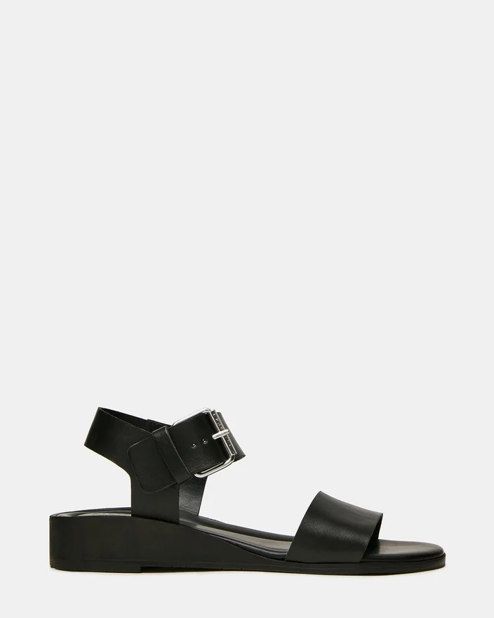 La sandale compensée Vaeda en cuir noir allie style et confort au quotidien. Une bride à boucle réglable assure un ajustement sur mesure, tandis que la semelle compensée offre un maintien fiable et une légère rehausse. Que vous alliez prendre un brunch ou faire des courses, cette sandale s’adapte à votre style de vie avec une sophistication discrète et un confort tout au long de la journée.