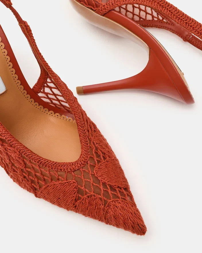 Découvrez le talon Andromeda Crochet Terracotta. Cet élégant talon présente un bout pointu et un talon aiguille pour un look sophistiqué. La bride Slingback assure un maintien sûr tandis que le design unique ajoute une touche de luxe. Parfaits pour toutes les occasions formelles, ces talons rehausseront votre tenue d’un cran.