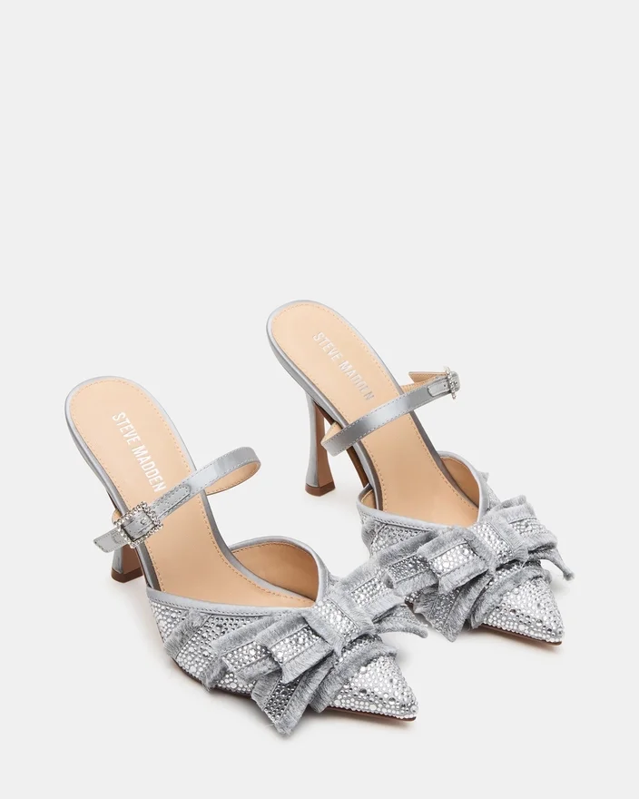 Rehaussez votre style avec les Baylin Grey Satin Rhinestones, dotées d’un talon aiguille élégant qui offre une silhouette sophistiquée. L’élégant nœud ajoute une touche délicate, tandis que le bout fermé et pointu rehausse le look raffiné de la chaussure. Conçue pour allier un charme intemporel à un attrait moderne, cette chaussure est parfaite pour les occasions formelles ou pour faire sensation en toute circonstance.