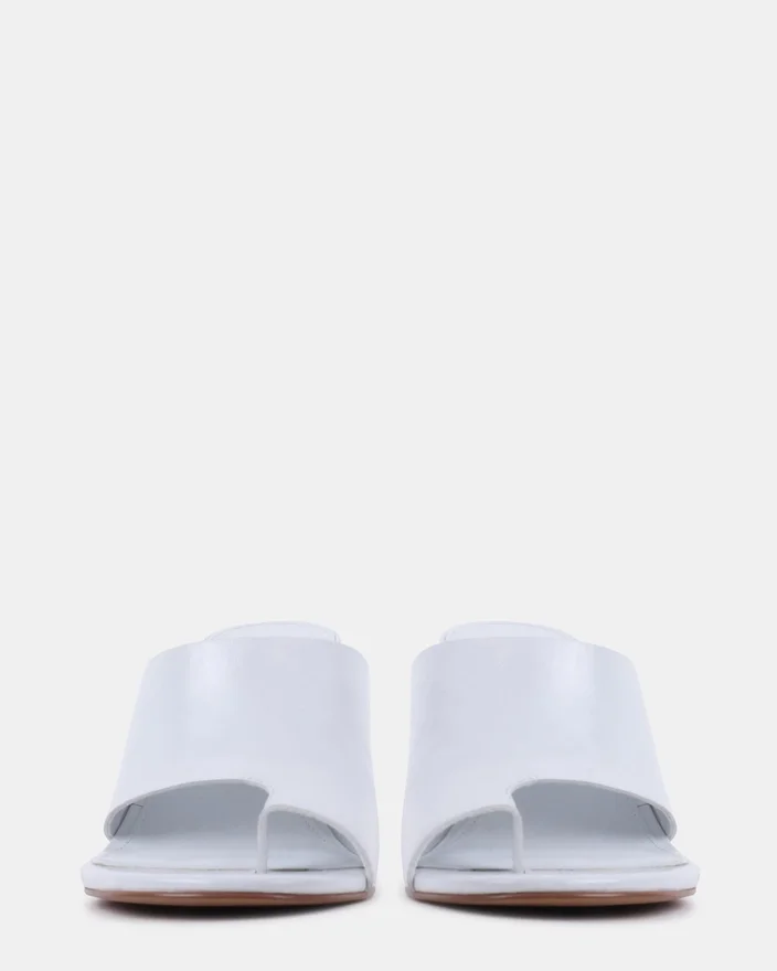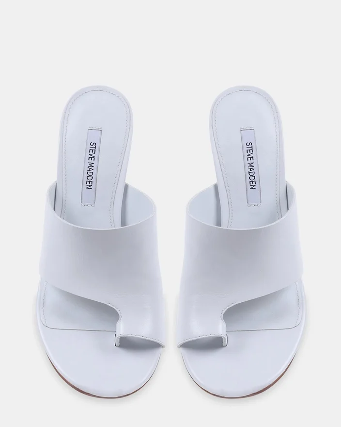 Le talon Valentin en cuir blanc présente une silhouette intemporelle à bout rond et un élégant design à bride sur le bout. Ce modèle sophistiqué allie un charme classique à un confort moderne, ce qui le rend parfait pour rehausser une tenue de tous les jours ou pour les occasions spéciales. Conçue avec une attention particulière aux détails, cette mule offre à la fois style et confort à la femme contemporaine.