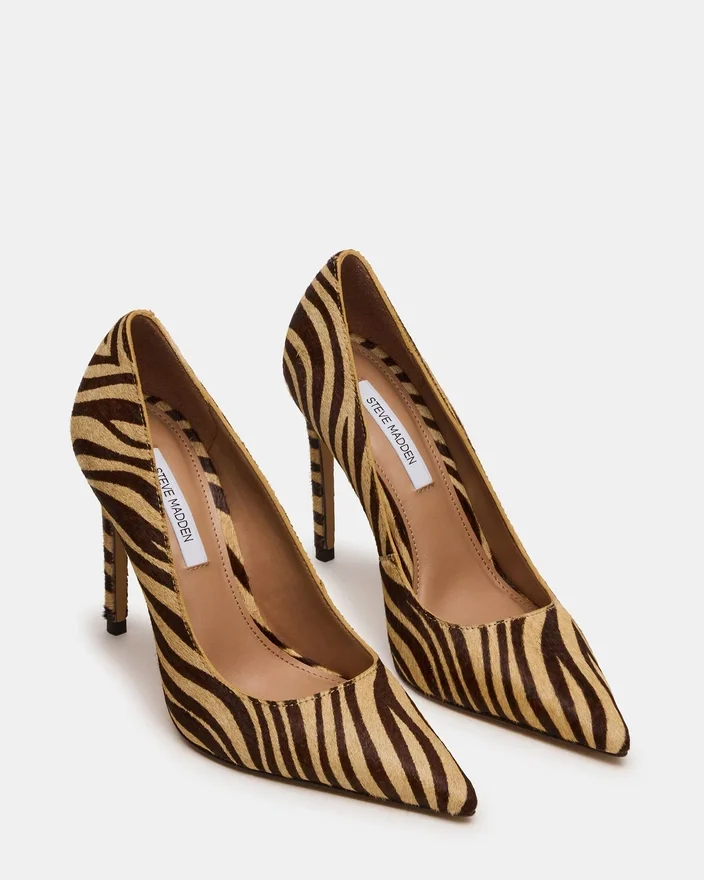 Fabriquées à partir de matériaux luxueux, ces escarpins Noir Tiger ajoutent une touche de sophistication à n’importe quelle tenue grâce à leur bout pointu et leur talon aiguille.