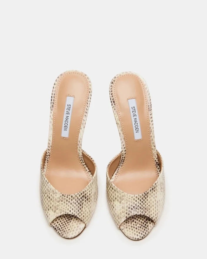 La sandale Priya Natural Snake associe un talon aiguille fin à un design rétro à bout ouvert sur la bride à l’avant.
