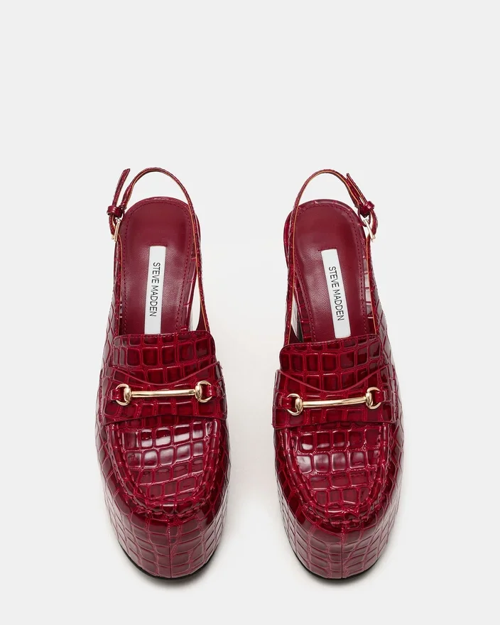 Passez à la vitesse supérieure avec les talons Quinn Red Crocodile. Le talon bloc élégant et la chaussure à plateforme offrent stabilité et confort, tandis que les Slingbacks ajoutent une touche de sophistication. Rehaussez n’importe quelle tenue avec ces talons élégants et polyvalents.