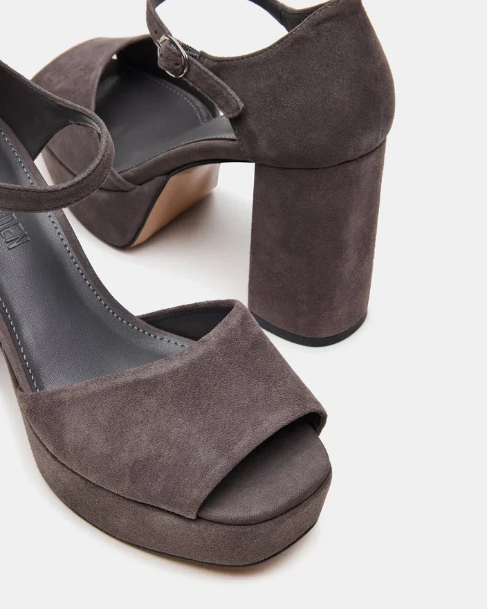 Le modèle London Grey Suede se caractérise par une chaussure à plateforme robuste associée à un talon bloc pour une stabilité et un confort accrus. Sa bride de cheville sécurisée garantit un maintien sûr, faisant de ces talons un choix raffiné à porter toute la journée. Conçus avec le souci du détail, ils allient à la perfection style et fonctionnalité.