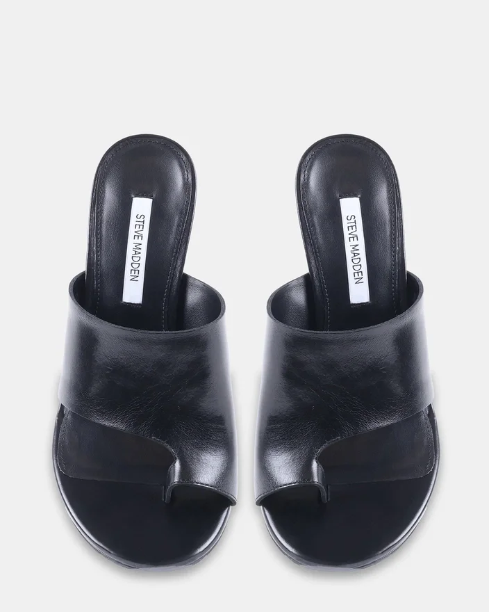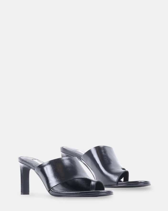 Le talon Valentin en cuir noir présente une silhouette intemporelle à bout rond avec une élégante bride sur le bout. Ce style sophistiqué allie un charme classique à un confort moderne, ce qui le rend parfait pour un usage quotidien raffiné ou pour les occasions spéciales. Conçue avec le souci du détail, cette mule offre à la fois style et confort à la femme contemporaine.