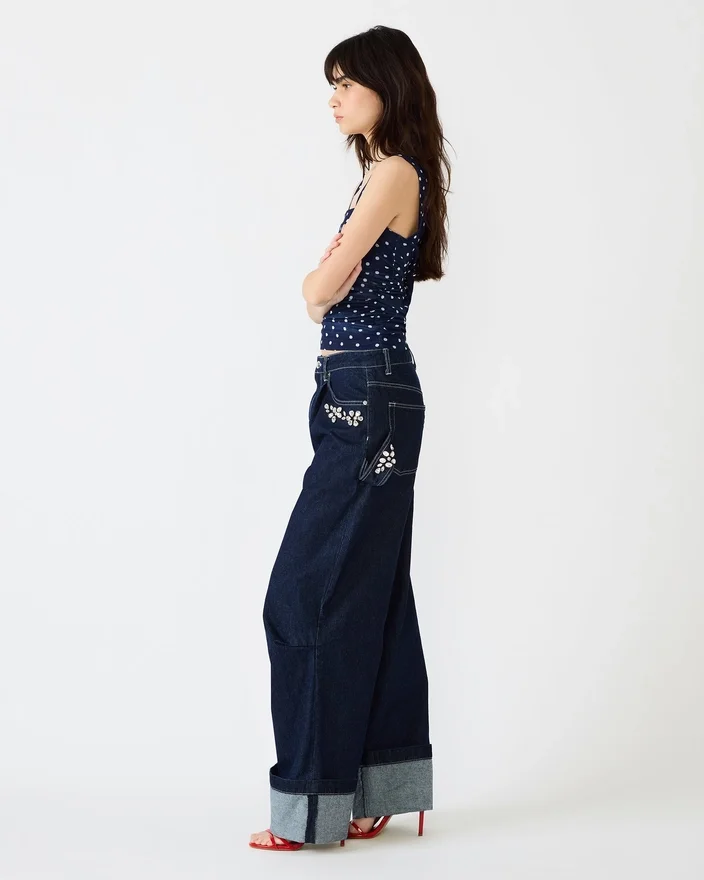 Rehaussez votre look denim avec le Bobbie Jean Bijou Blue. Ce bas en denim à jambes larges est orné de superbes strass qui captent la lumière à chaque pas, ajoutant une touche de glamour à votre look de tous les jours.