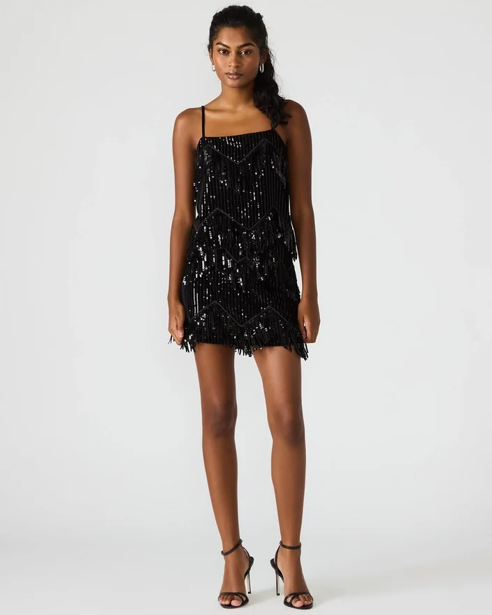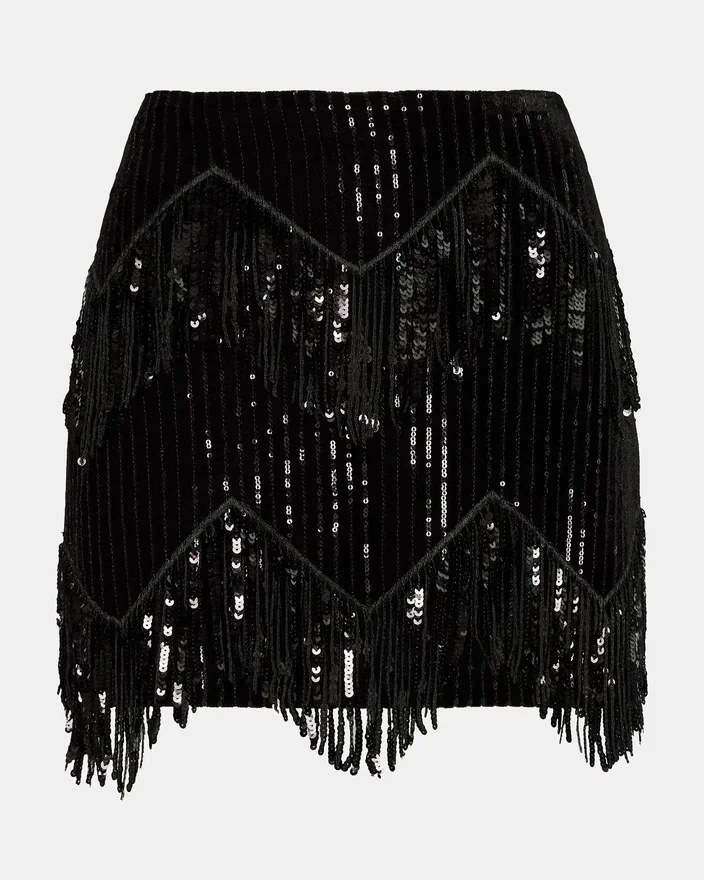 Rehaussez votre style de soirée avec la jupe à paillettes Cindi noire. Cette jupe est ornée de paillettes scintillantes disposées en franges dynamiques, ajoutant du mouvement et une touche audacieuse à votre look. Conçue pour faire partie d’un ensemble assorti, elle offre une tenue coordonnée et tendance, parfaite pour les occasions spéciales ou les sorties nocturnes.