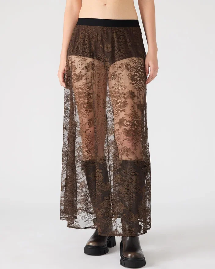 Rehaussez votre garde-robe avec la jupe Gisela, une jupe longue en dentelle transparente qui allie élégance et sophistication moderne.