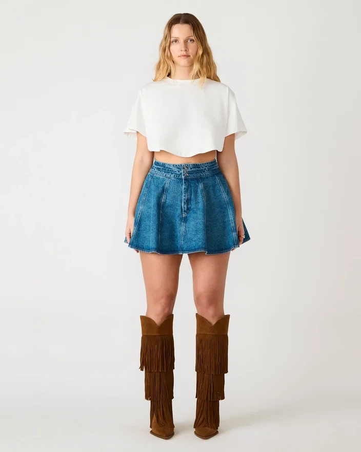 La jupe Lilliany Aruba Blue allie un style contemporain à des éléments de conception pratiques. Confectionnée en denim impeccable, cette mini-jupe présente des plis raffinés qui créent du mouvement et un intérêt visuel. Les poches avant fonctionnelles offrent une utilité au quotidien, tandis que la fermeture à boutons assure un ajustement sûr. La jupe offre une grande polyvalence pour être associée à des basiques ou à des pièces phares.