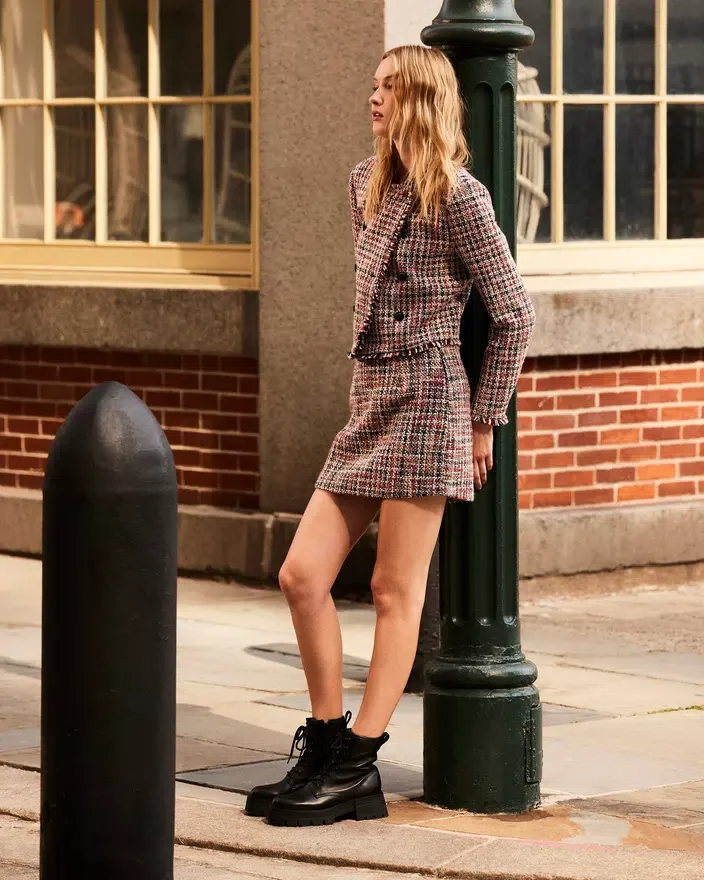 Conçue et confectionnée avec soin, la jupe Mattea est une mini-jupe multicolore mouchetée qui rehaussera à coup sûr n’importe quelle tenue. Dotée d’une fermeture à glissière latérale pratique et entièrement doublée pour plus de confort, cette jupe en tweed est parfaite pour toutes les occasions.