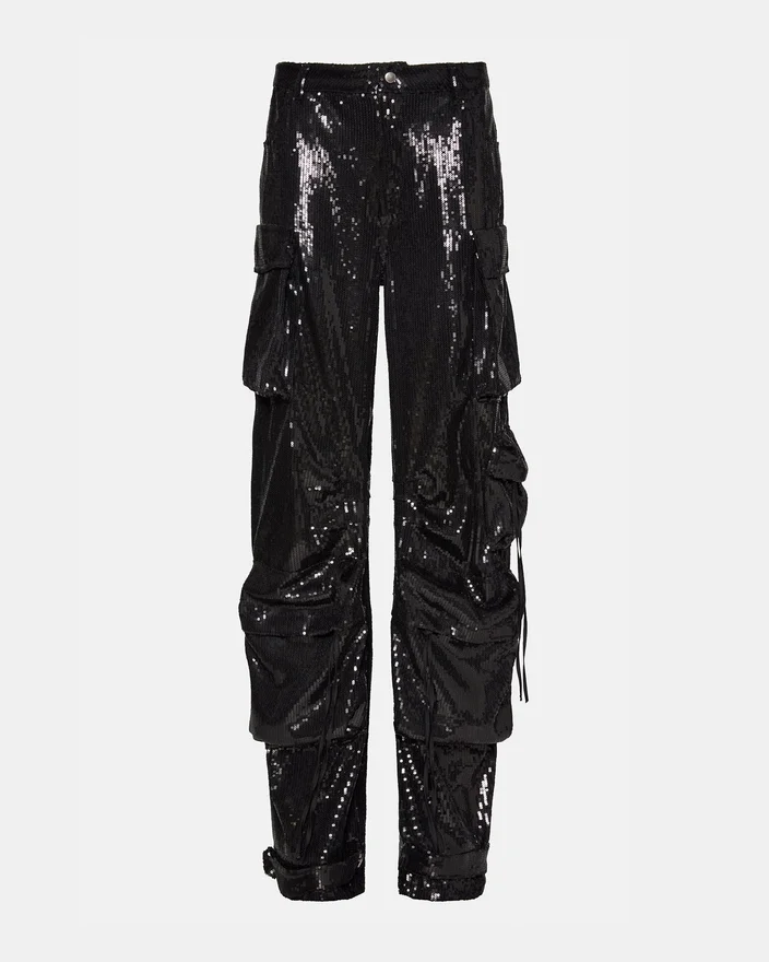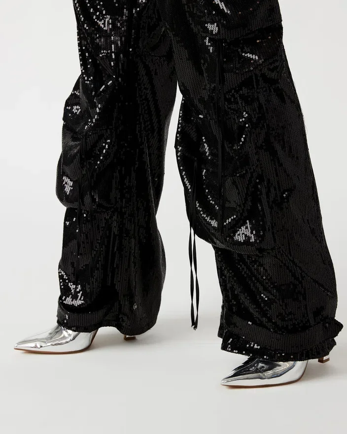 • Pantalon cargo à paillettes à taille mi-haute