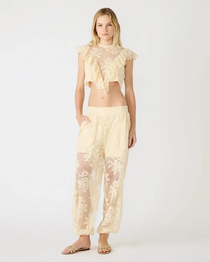 Le pantalon Faya Tropic Sands apporte une touche de style décontracté à votre garde-robe de saison. Ce modèle à enfiler associe une maille respirante à de délicats détails en dentelle pour un look léger et sophistiqué. La taille smockée assure un ajustement sûr et personnalisable, tandis que les deux poches fonctionnelles à l’avant ajoutent une touche pratique. Idéal pour les aventures par temps chaud et une tenue décontractée au quotidien.