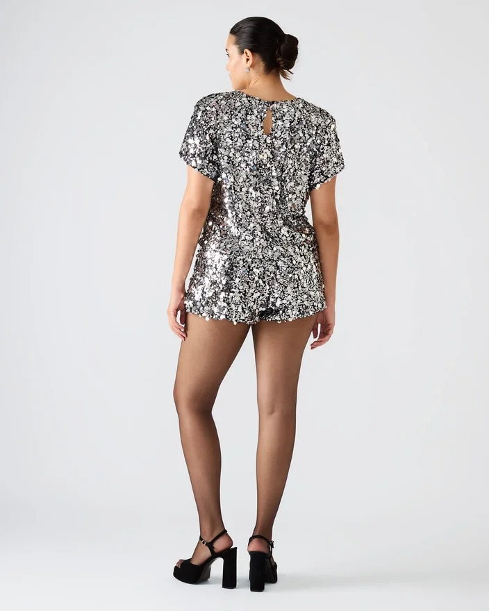 Rehaussez votre look avec le short Celestine argenté, orné de paillettes qui ajoutent une touche subtile de brillance et de sophistication. Ce short à enfiler offre un confort optimal tout en conservant une coupe ajustée, complétée par des poches avant fonctionnelles pour plus de praticité. Conçu pour faire partie d’un ensemble coordonné, il offre des options de style polyvalentes pour les occasions décontractées comme habillées.