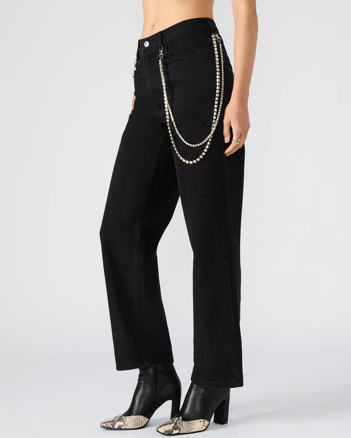Ce jean en denim à jambes larges Swift allie style et praticité grâce à ses poches fonctionnelles à l’avant et à l’arrière pour un rangement pratique. La chaîne amovible ajoute une touche polyvalente et audacieuse, vous permettant de personnaliser votre look. Conçu pour le confort et une coupe décontractée, ce jean est un choix expert pour une garde-robe moderne et avant-gardiste.