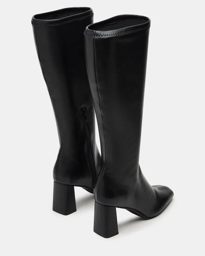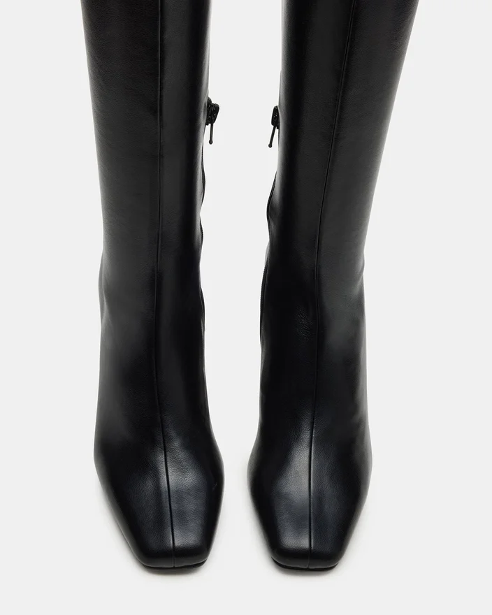 Une fermeture à demi-fermeture éclair confère à la botte au genou Holly Black Wide Calf un ajustement qui met en valeur le mollet, tandis qu’un talon bloc incliné et un bout carré apportent à ce modèle une finition élégante.