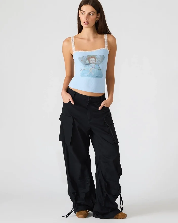 Le débardeur Love Goldie Surf Blue se distingue par ses bretelles ornées de dentelle délicate, qui lui confèrent une touche raffinée et féminine, associées à un motif graphique unique qui le rend unique. Conçu pour offrir un ajustement confortable, ce débardeur allie style et originalité, ce qui en fait un choix polyvalent pour des tenues décontractées ou plus habillées par temps chaud.