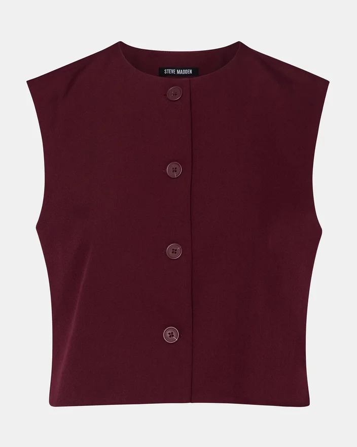 Le haut Alessa bordeaux présente un design classique à boutons, confectionné avec précision pour un look soigné. Son motif à carreaux assorti en fait une pièce idéale pour créer un ensemble coordonné, alliant un style intemporel à une grande polyvalence. Parfait pour être porté seul ou en superposition, ce haut offre à la fois confort et sophistication, ce qui en fait un incontournable raffiné de votre garde-robe.