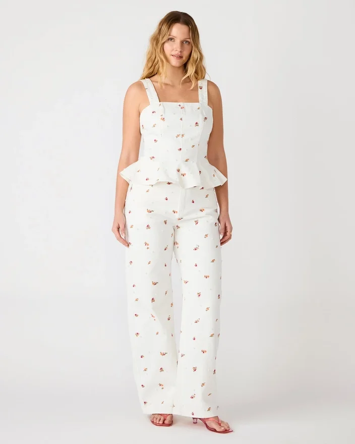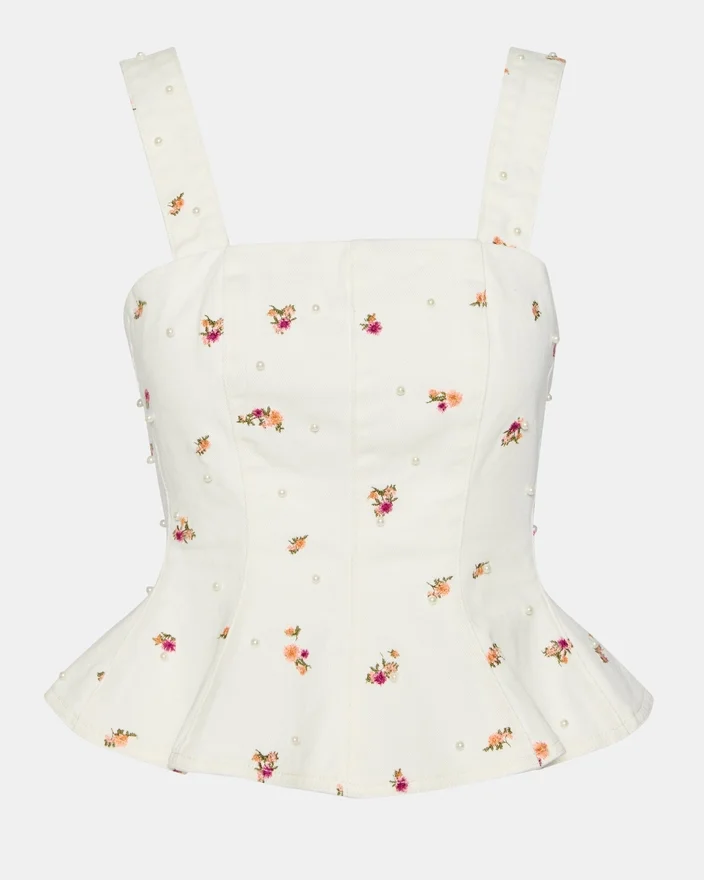 Le haut Fiorella Antique allie un style contemporain à des détails d’inspiration vintage. Ce haut sans manches en denim présente un charmant ourlet à volants et est proposé dans un ensemble coordonné complet. Orné de broderies florales multicolores éclatantes, il passe sans effort d’une tenue décontractée de jour à une tenue de soirée.