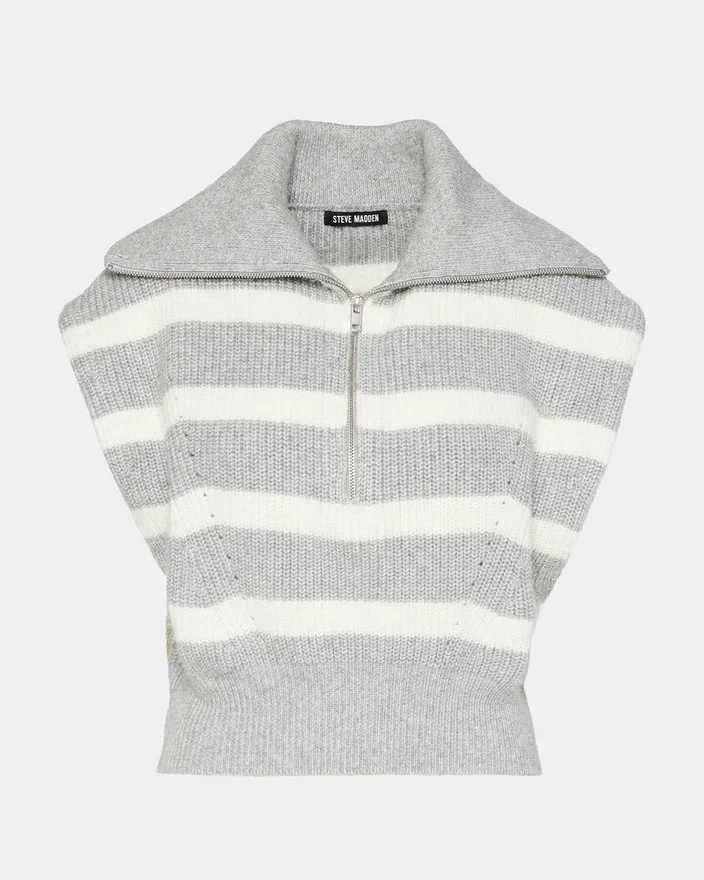 Restez élégant avec le pull Easton. Son design sans manches à capuche, son motif rayé et son large col offrent à la fois confort et style. La fermeture à demi-zip en métal ajoute une touche de praticité, tandis que la coupe ample garantit un look flatteur. Parfait pour les journées actives.
