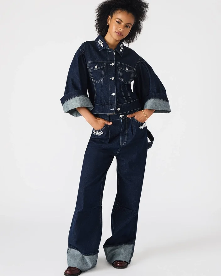 Cette veste Dorothy en denim bleu bijou à boutons présente un col raffiné orné de détails qui ajoute une touche sophistiquée à son design classique. Conçue pour être polyvalente, elle offre un look soigné mais décontracté, ce qui la rend idéale pour les superpositions lors des saisons de transition. Le denim résistant garantit une longue durée de vie, tandis que l’encolure décorative rehausse votre tenue d’une élégance subtile.